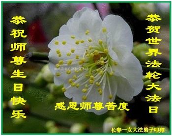 恭祝师尊生日快乐! 长春一学法小组大法弟子敬上 吉林省长春大法弟子夫妻俩恭祝师尊生日快乐!恭贺世界法轮大法日!谢谢师尊的慈悲苦度!