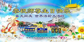 吉林省长春两大组大法弟子恭祝师尊华诞!祝贺世界法轮大法日!