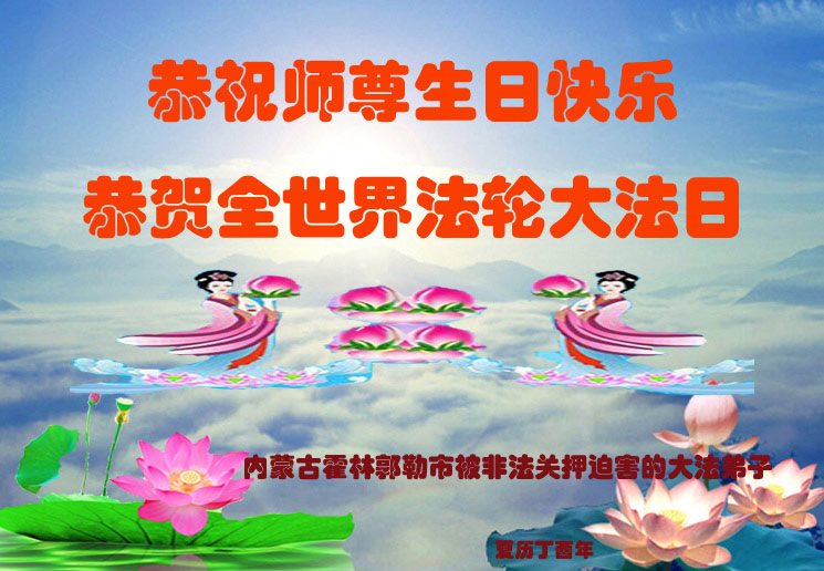 恭祝慈悲伟大的师尊生日快乐!普天同庆世界法轮大法日! 黑龙江省哈尔滨市依兰县被非法关押的大法弟子敬上 被非法关押在黑龙江省女子监狱的大法弟子恭贺世界法轮大法日!