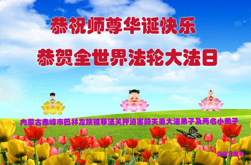 内蒙古赤峰市巴林左旗被非法关押迫害的夫妻大法弟子及两名小弟子恭祝师尊华诞快乐!恭贺全世界法轮大法日!