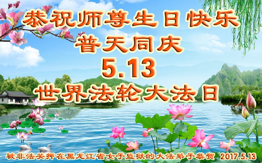 恭祝师尊生日快乐! 普天同庆5.13世界法轮大法日! 被非法关押在黑龙江省女子监狱的大法弟子恭贺 被天津滨海监狱非法关押的大法弟子恭祝师父生日快乐!