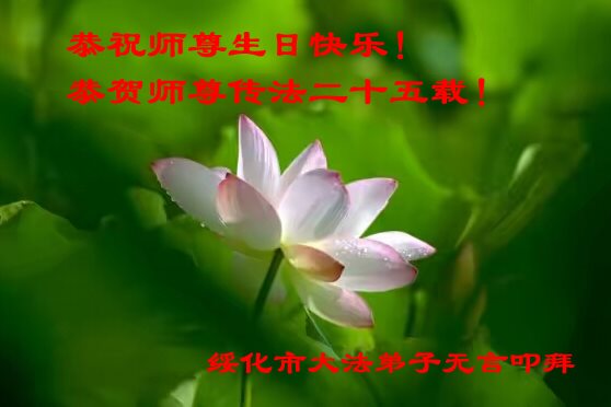 黑龙江省绥化一大法弟子恭祝师尊生日快乐!恭贺世界法轮大法日暨师尊传法二十五载!