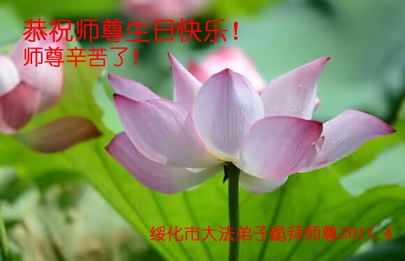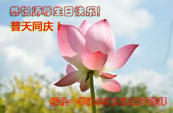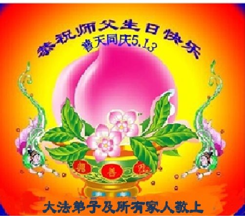 在过去的岁月,师尊带领着我们、保护着我们走过魔难。在今天这普天同庆同祝的日子里,我们怀着无比感恩恭敬的心恭祝我们伟大的师尊生日快乐!我们学法小组全体大法弟子敬上!叩拜!