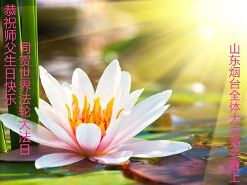 中国山东省烟台全体大法弟子恭祝师父生日快乐!同贺世界法轮大法日!