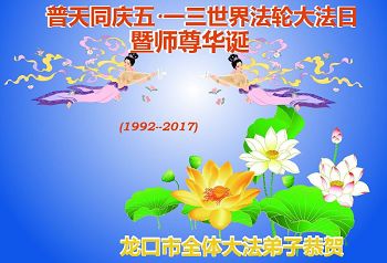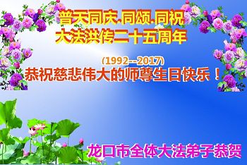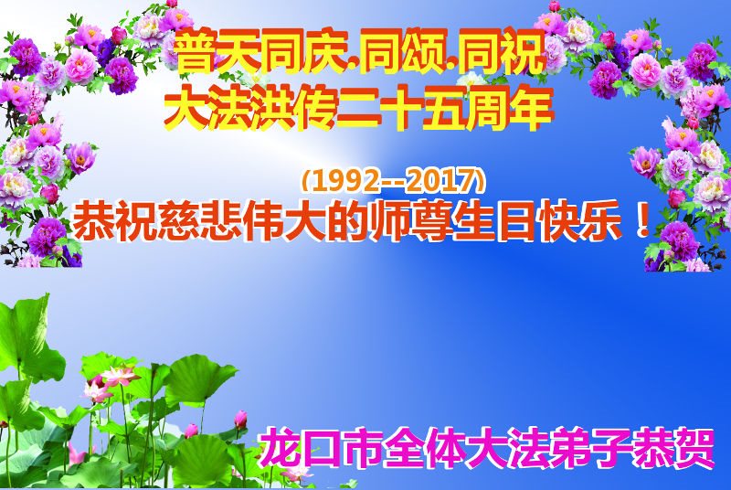 山东省烟台市龙口市全体大法弟子恭祝慈悲伟大的师尊生日快乐!同庆世界法轮大法日!