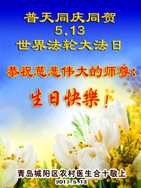 山东省青岛市城阳区农村医生恭祝慈悲伟大的师尊生日快乐!普天同庆同贺世界法轮大法日!