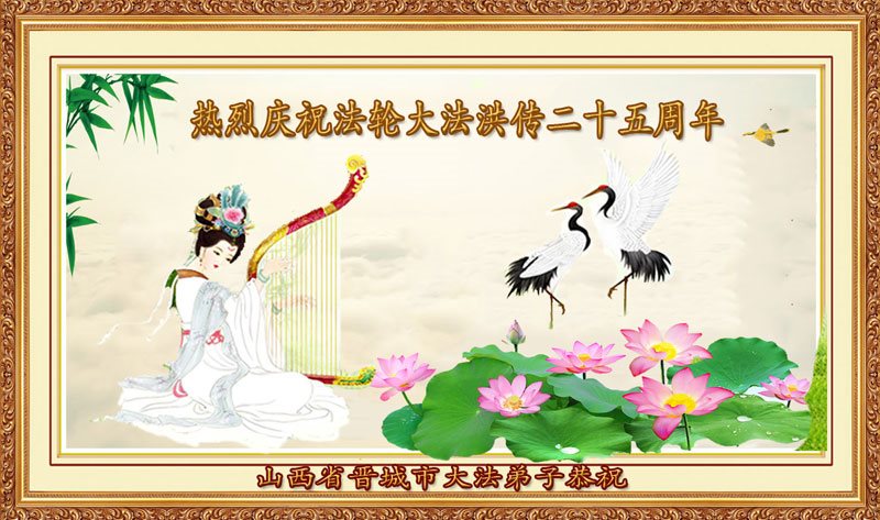 山西省晋城市大法弟子热烈庆祝法轮大法洪传二十五周年!