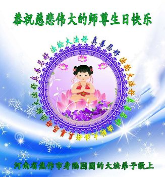 吉林省长春市二道区一大法弟子恭祝慈悲伟大的师尊生日快乐!