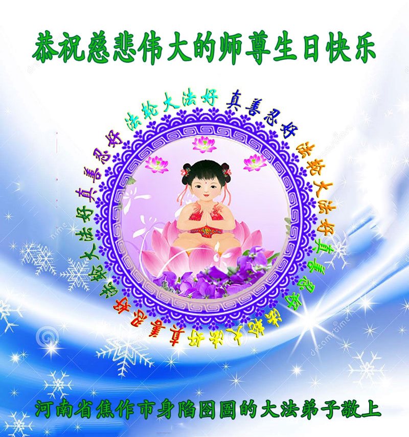 河南省焦作市狱中大法弟子恭祝慈悲伟大的师尊生日快乐!
