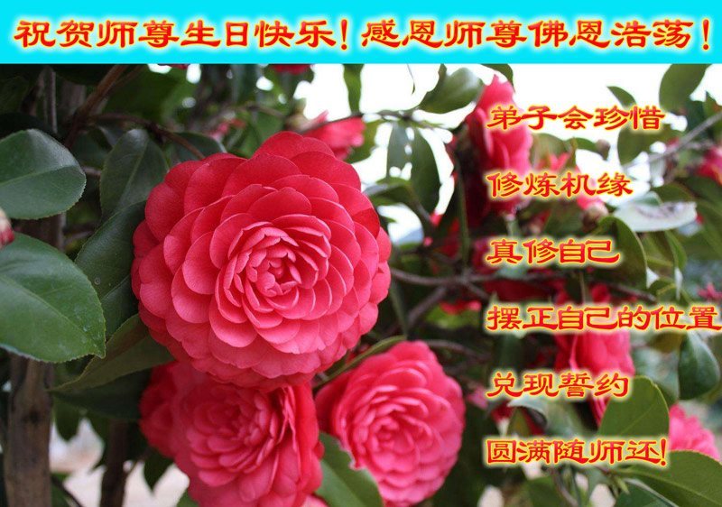 师父您辛苦了!请师父放心,我要在今后的时间里做好三件事,多救人,讲清真相。做一个真正的修炼人,严格要求自己,珍惜师父给我的一切,让师父多一些快乐!少一些操心。再一次恭祝师尊生日快乐!