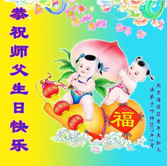 北京海淀区老年夫妇大法弟子恭祝师父生日快乐!