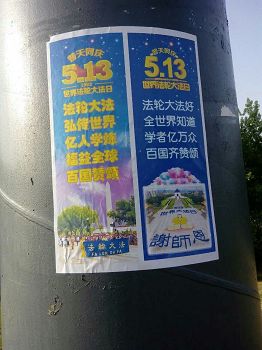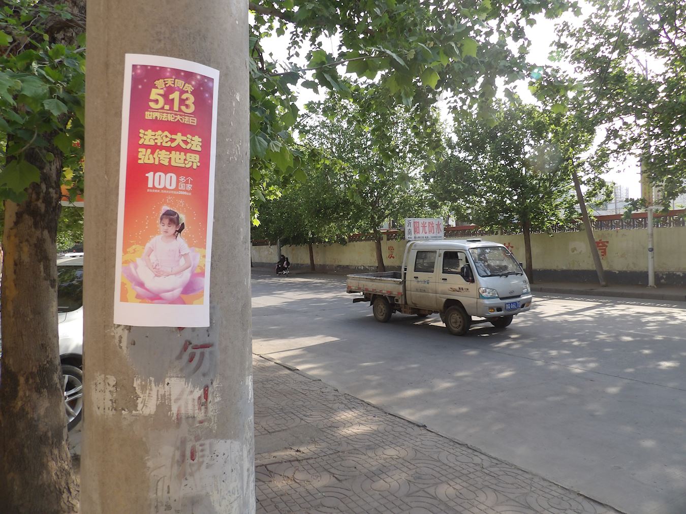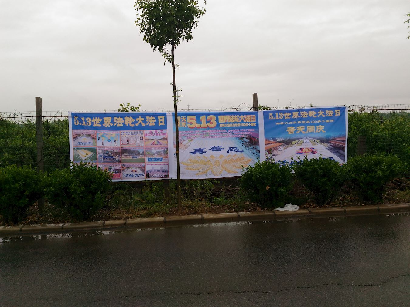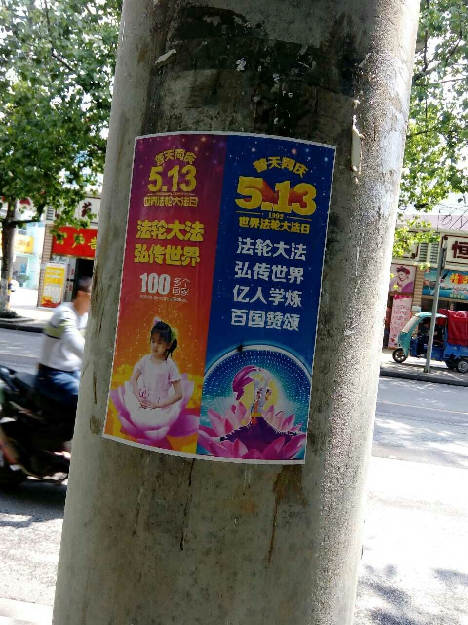 江西省南昌市的大街小巷于2017年5月间张贴和悬挂了纪念“5.13世界法轮大法日”的不干胶及展板,表达了南昌市民众对这一普天同庆节日的祝贺和法轮大法洪传的盛况! 湖北荆州古城旅游区真相标语