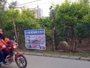 山东省临沂市蒙阴县多处可见真相展板、条幅、粘贴