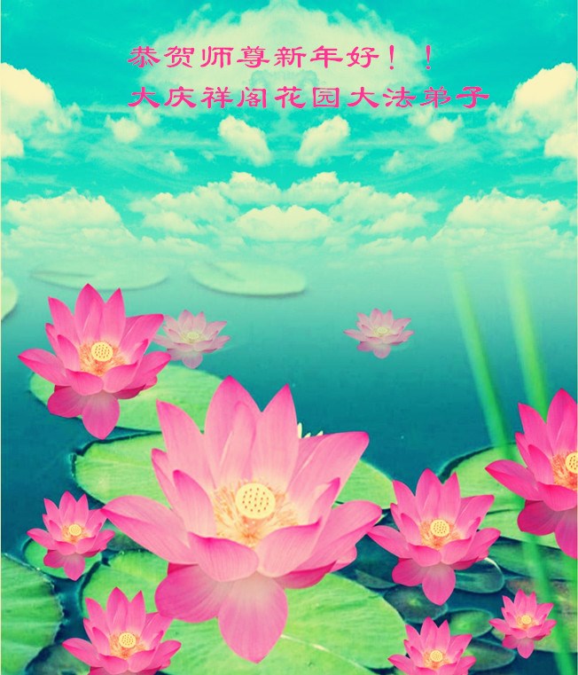 祝师尊新年好,新年快乐! 大庆市西城区大法弟子 大庆市龙南大法弟子 大庆市乐园大法弟子 大庆市憩园大法弟子 大庆市怡园大法弟子 大庆市悦园大法弟子 黑龙江省大庆市龙凤区一学法小组大法弟子叩拜恭祝师父新年好!