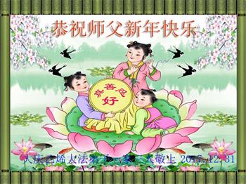 我是黑龙江大庆大法弟子,在元旦到来之际,我代表,我媳妇同修,我岳母同修,和我小姨子同修,祝师父元旦快乐! |