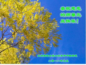 黑龙江省庆安县教育界大法弟子向师尊问候,祝师尊新年快乐!弟子感谢师尊到慈悲救度,还要努力精進,做好三件事! 辽宁省沈阳教育系统大法弟子恭祝师父新年快乐!