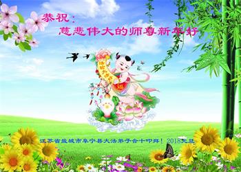 江苏省盐城市阜宁县全体大法弟子恭祝师尊新年好!