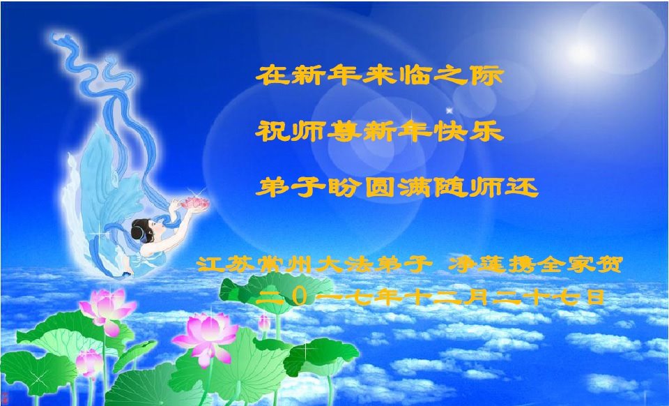 2018年的新年就到了,江苏弟子在此祝师尊新年好!师尊新年快乐!也祝全球大法弟子新年快乐! 一外地在江苏省南京的大法弟子恭祝师尊新年好!