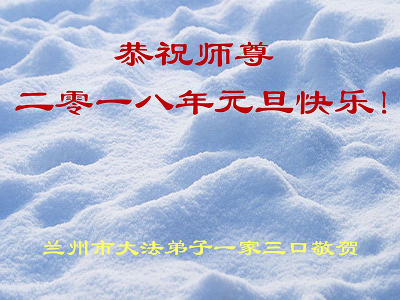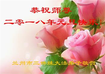 至此2018年元旦到来之际,北京大法弟子向慈悲伟大的师尊致以最崇高的敬意和问候!在正法剩下的时间里,我们一定会学好法,勇猛精進,做好三件事,报答师恩。 甘肃兰州市三姊妹大法弟子恭祝师尊元旦快乐!