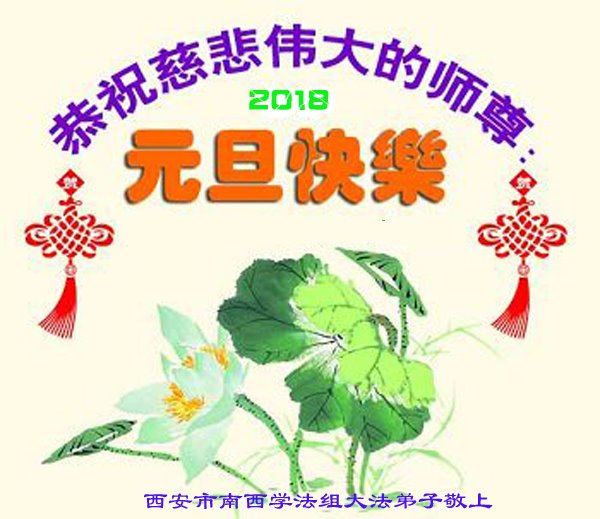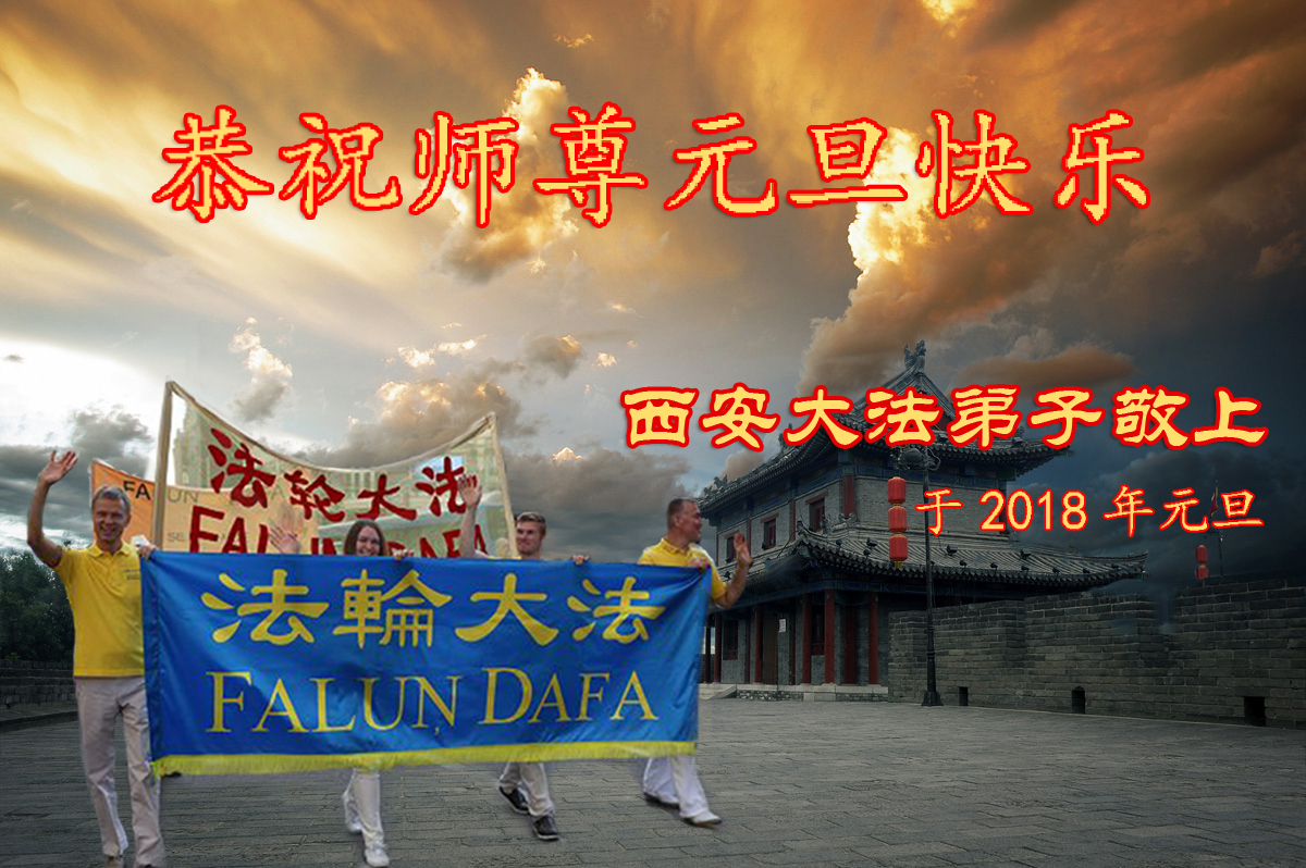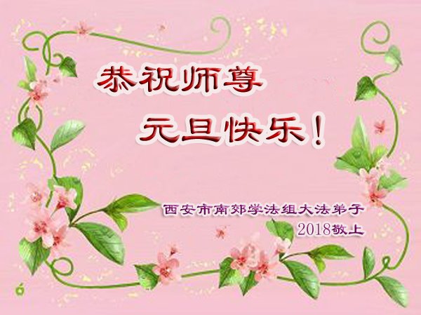 恭祝慈悲伟大的师父新年好! 时光如飞,从一九九八年得法至今已二十年了,这二十年,弟子有太多的遗憾和不足,总觉的愧对师尊的慈悲救度,在今后的岁月里,弟子要抓紧在人世间与正法同在的有限时间,多学法,紧跟正法進程,修去一切人心,尽可能修好自己,兑现誓约,多救人,不负师尊的慈悲救度! 西安大法弟子全家敬拜师父!恭祝师父新年快乐! 陕西省西安市全体大法弟子恭祝慈悲伟大的师尊元旦快乐!