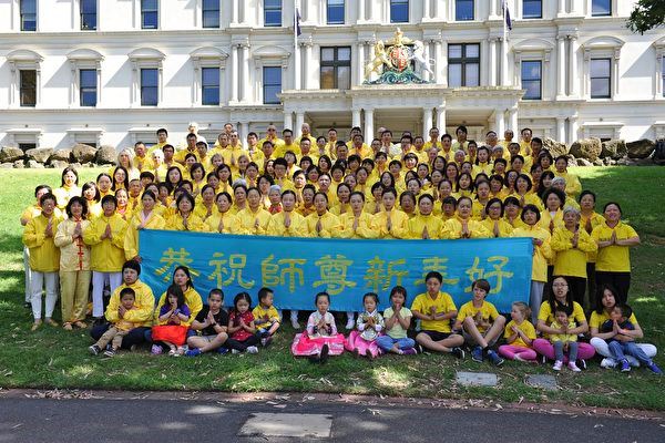 墨尔本法轮功学员每年都会在新年为师尊送上新年祝福,感恩师尊的慈悲苦度,以及在大法中修炼升华的无比美好。 大法让人类变得美好  图2:Barbara Shafer(右二)非常感谢李洪志师父的教诲 |