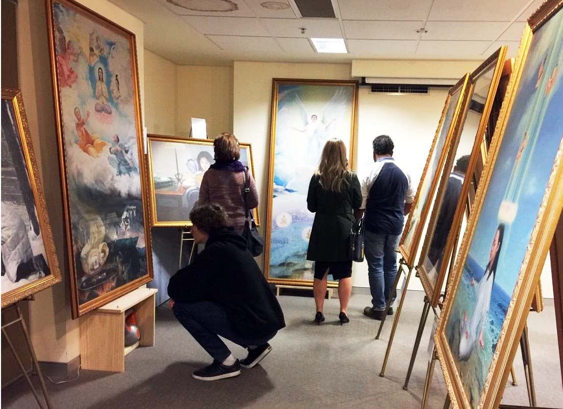 堪培拉居民盖瑞(Gary)看完纪录片后表示:“我们夫妻俩还有几个邻居和他们朋友等,一共来了十几个人,看完纪录片,感觉特别震惊和悲愤。这些证据足以证明正在发生的这一切,很多澳洲人还不知道中国正在发生着这样的惨案。但我们的政府在做些什么呢?尽管中共的确控制着贸易等手段,但唯一能曝光这一切的,就是澳洲政府站出来提出质疑或者用我们能利用的方式施加压力,我们必须把这个问题在中共面前摊开。” 一位被中共灌输了许多诬陷法轮功谎言的中国女孩看完电影后,聆听当地法轮功学员轩女士向她讲述亲身修炼体会过程中,对法轮功真相得以深入了解,清除了对法轮功的误解。轩女士赠送她一本讲述活摘器官罪行的英文书,她体会到法轮功学员为何自己花钱制止和购买真相资料赠送给人们的意义,并理解了放映纪录片和举办“真善忍美展”的目的和意义。她也意识到了中共迫害法轮功问题的严重性,活动结束的时候,她还不舍得离去,和轩女士交换了电话号码,想了解更多中共的罪行。  图9:七十多位报名观看电影的观众也观看了“真善忍美展” |