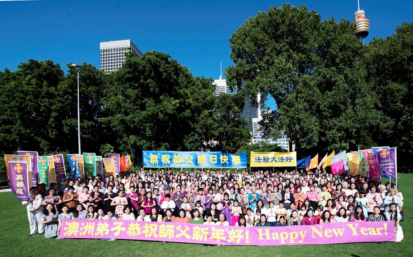 | 【明慧网二零一八年十二月二十六日】(明慧澳洲悉尼记者站报道)二零一八年十二月八日清晨,悉尼法轮功学员们身着节日盛装,怀着对法轮大法创始人李洪志大师无比感恩的心情,欢聚在悉尼市中心的海德公园(Hyde Park),向师尊恭祝新年快乐! 当天,悉尼大法弟子们虔诚恭敬的双手合十齐声欢呼:“恭祝师父新年快乐!法轮大法好!真、善、忍好!”  图1:澳洲悉尼法轮功学员满怀感恩和喜悦在海德公园(Hyde Park)拍照向师父恭祝新年快乐 |
