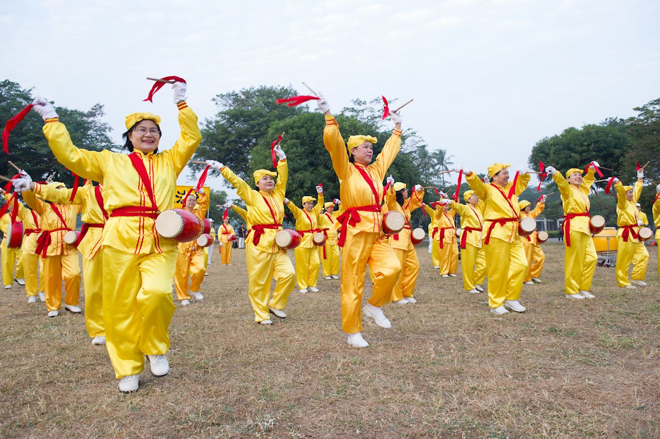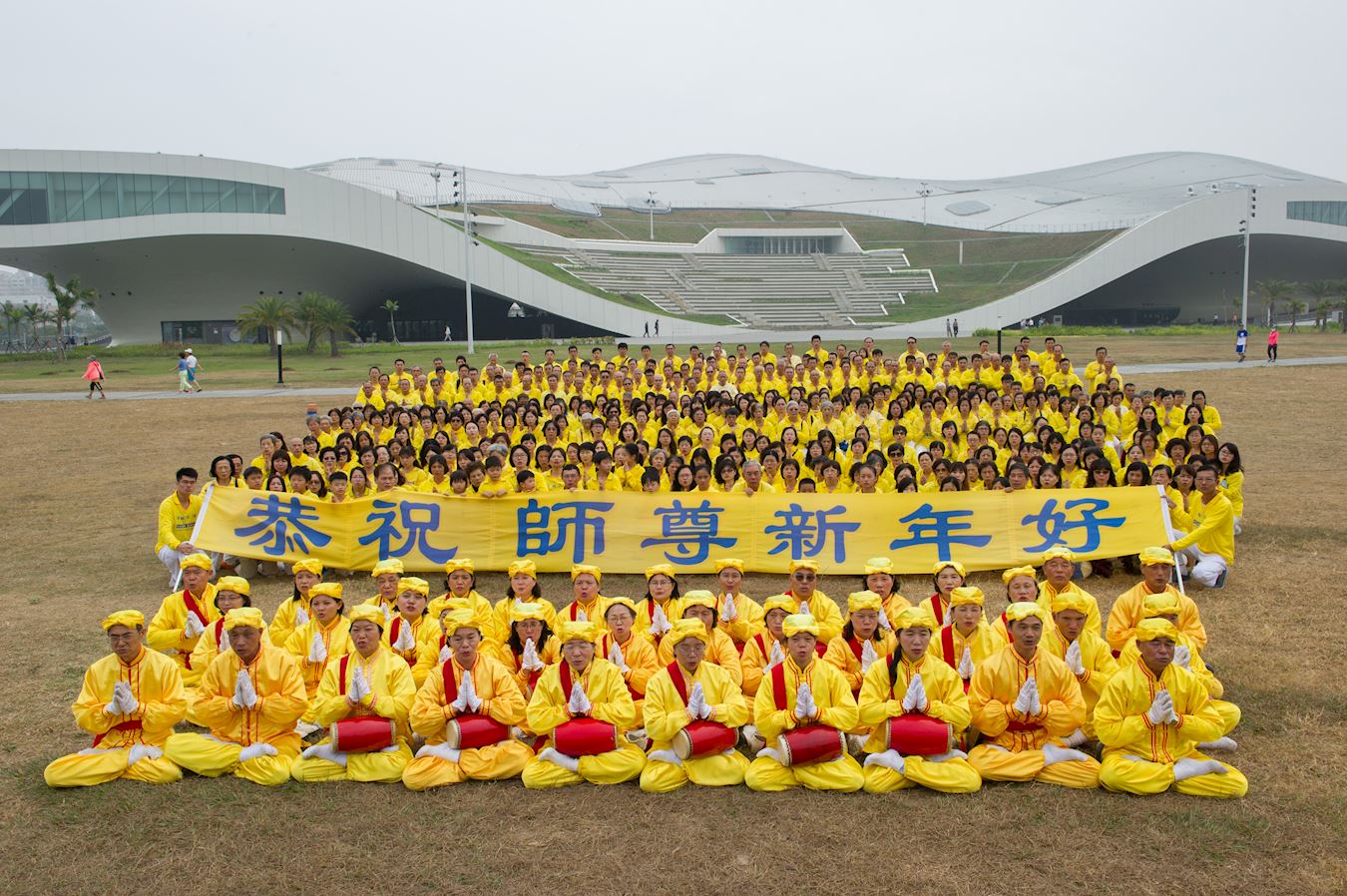 初学功法的林智鸿则称,修炼法轮功功法,可以裨益健康。他强调,人权是普世价值,所有人都应该被公平对待,法轮功学员也不例外;法轮功长期关注人权和活摘议题,不该受到威权政府的压迫,他支持法轮功,愿与法轮功学员站在一起。  图10:元旦前夕,高雄市法轮功学员齐聚卫武营都会公园草坪广场,海洋里里长蔡秀宝向法轮功创始人李洪志先生拜年。 |