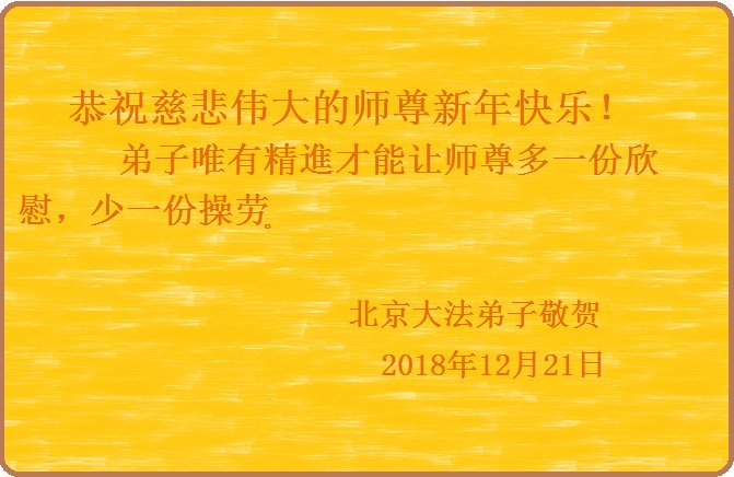 【明慧网二零一八年十二月二十九日】 北京大法弟子恭祝慈悲伟大的师尊新年好!