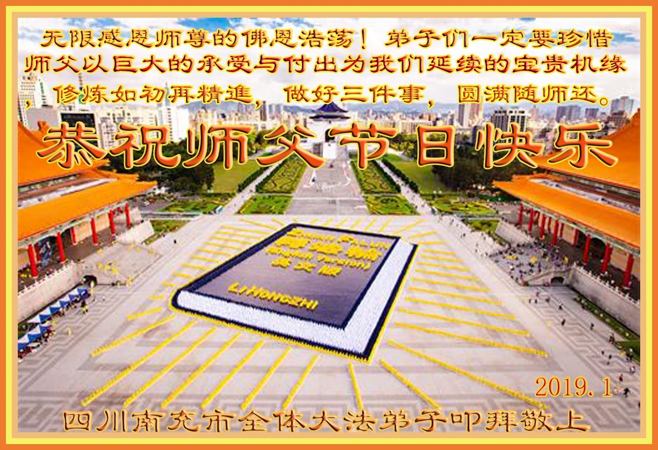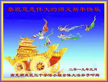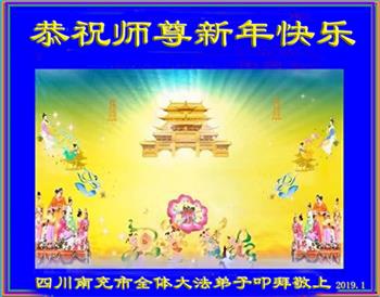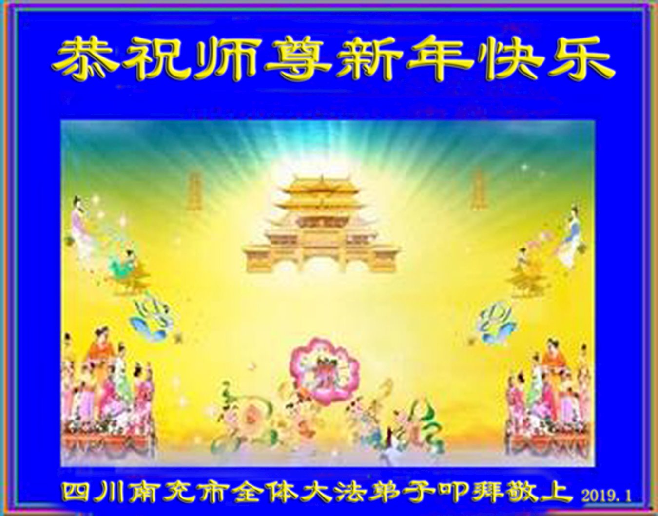 师尊好!师尊您辛苦了!在新的一年里,弟子一定严格要求自己,继续做好三件事,修好自己,不辜负师父和众生的期望,完成好自己的使命,兑现史前的誓言。 四川南充市全体大法弟子恭祝师父节日快乐!