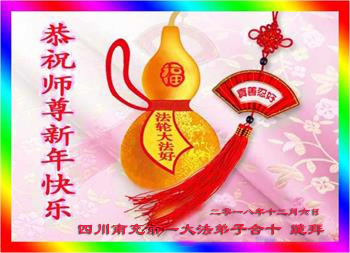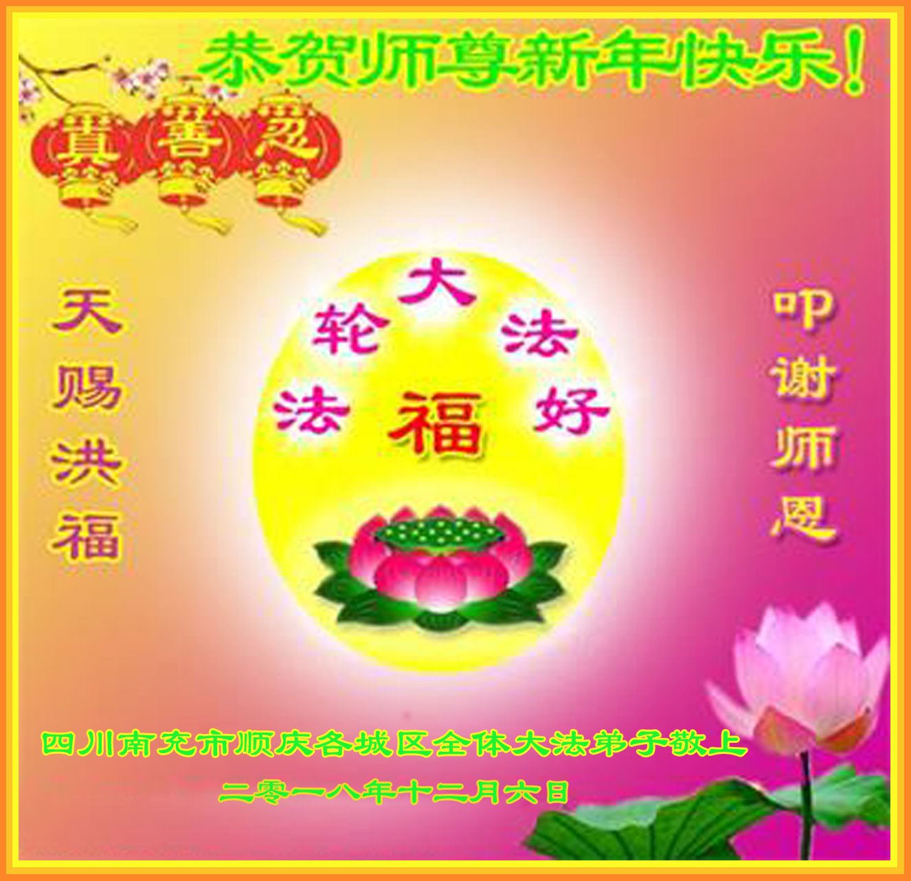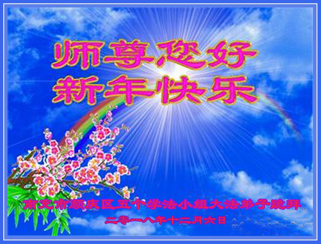南充市顺庆区一大法弟子全家 敬上 二零一八年十二月卄五日 四川南充市顺庆区俩人学法小组大法弟子恭祝伟大的师尊新年快乐!