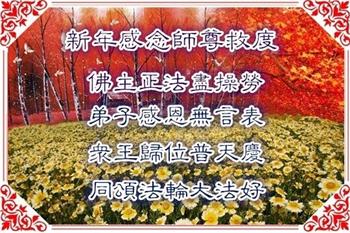 感谢师尊慈悲苦度。弟子一定努力做好三件事,跟师父回家。 天津一大法弟子与先生恭祝师尊新年快乐!