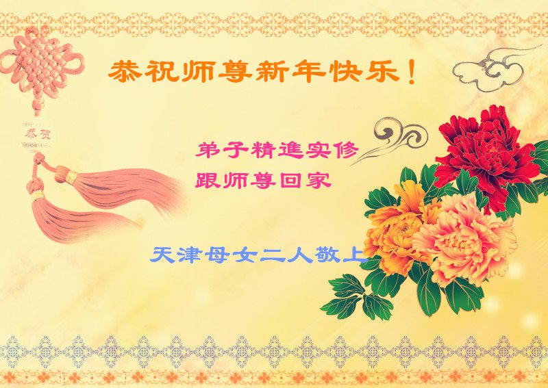 天津母女二人大法弟子恭祝师尊新年快乐!