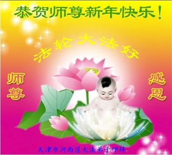 天津市河北区一学法小组大法弟子恭祝师尊新年快乐!
