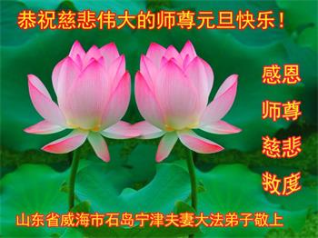 山东省威海市石岛宁津镇夫妻大法弟子恭祝慈悲伟大的师尊元旦快乐!