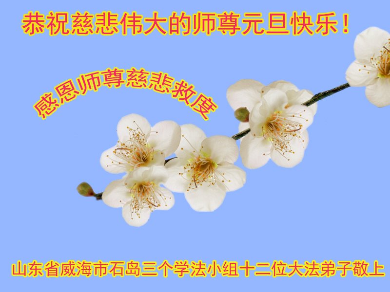 山东省威海市石岛三个学法小组十二位大法弟子恭祝慈悲伟大的师尊元旦快乐!