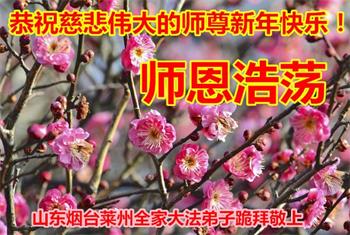 山东烟台莱州全家大法弟子恭祝慈悲伟大的师尊新年快乐!