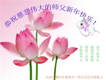 山东省烟台开发区一三人学法小组大法弟子恭祝师父新年快乐!
