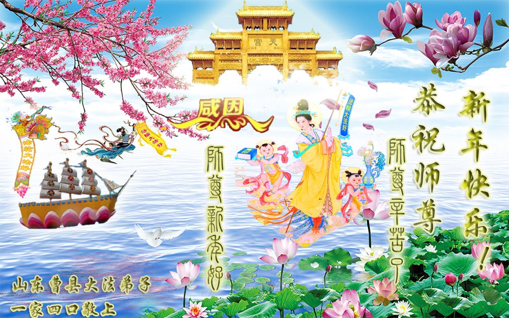 山东省威海市荣成市一大法弟子全家恭祝慈悲伟大的师父元旦快乐! 山东省菏泽市曹县大法弟子一家四口恭祝师尊新年快乐!