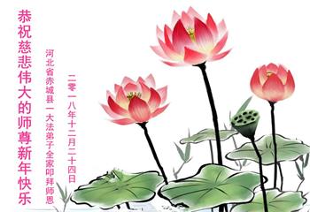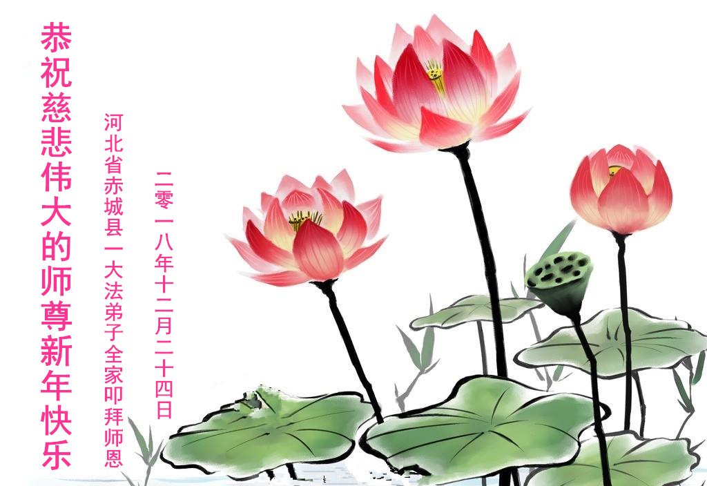 【明慧网二零一八年十二月二十九日】 河北省张家口市蔚县一大法弟子恭祝师尊新年快乐!