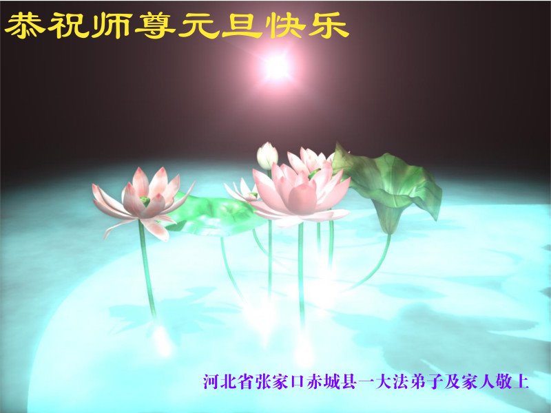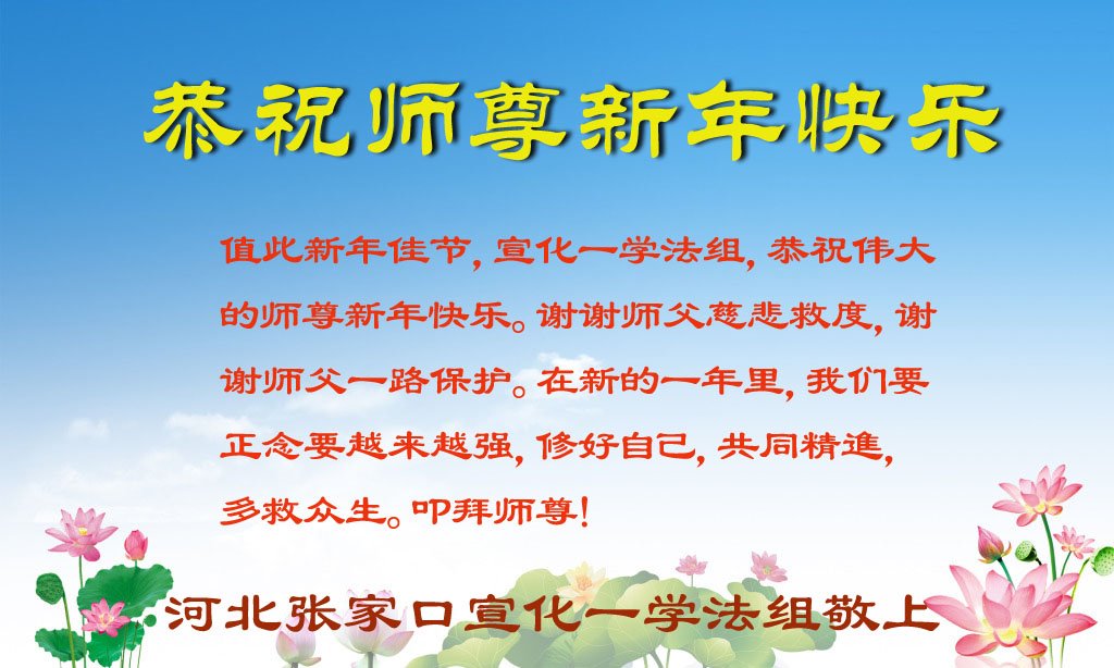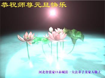 师尊新年好!弟子无以言表恩师的慈悲苦度,只有以法为师,修好自己,多救人,跟师尊回家。 河北张家口一大法弟子代表全家向慈悲伟大的师父祝新年好!