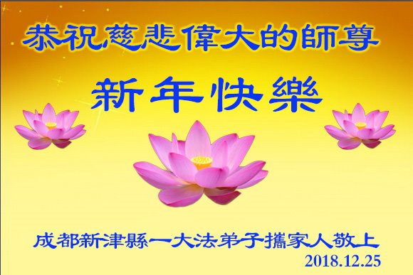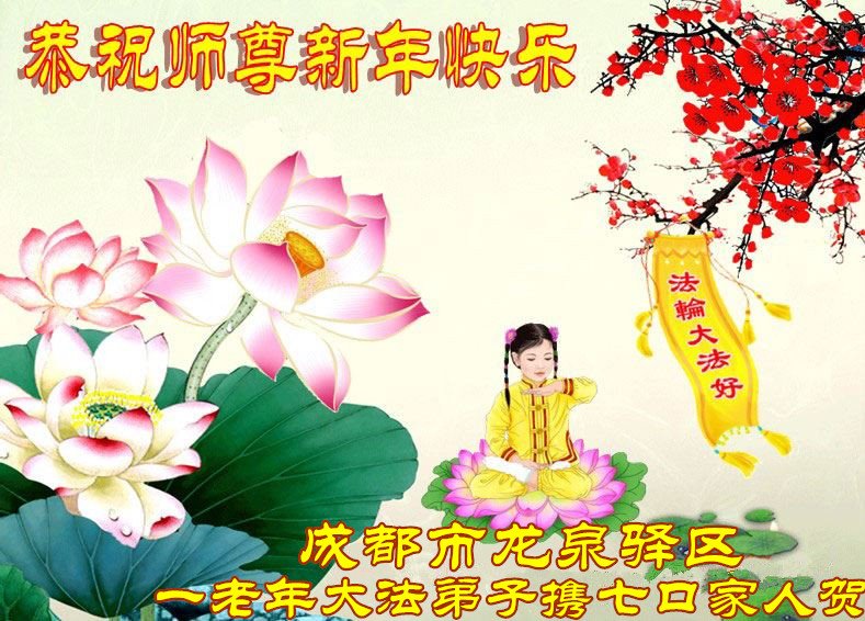 四川省成都一大法弟子及家人恭祝慈悲伟大的师尊新年好!