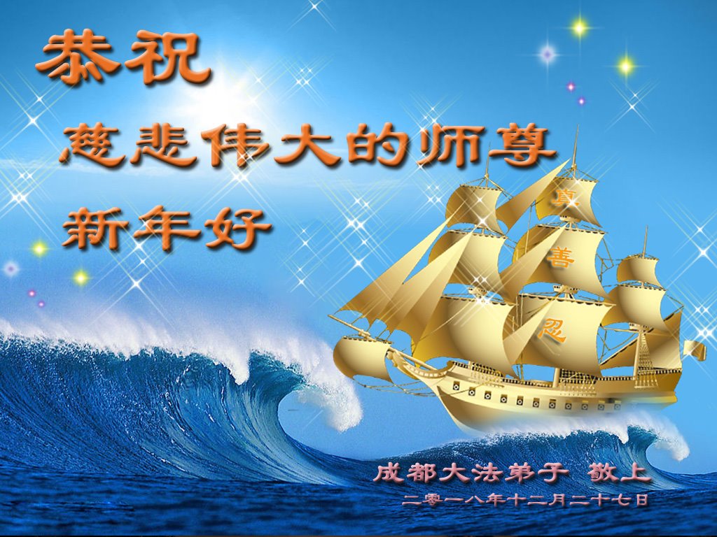 四川省成都市大法弟子恭祝伟大的师尊元旦快乐!我们将无惧前行路上的艰难险阻,在师尊的浩荡洪恩保护下,稳健的做好三件事,圆满随师还。 四川省成都大法弟子恭祝慈悲伟大的师尊新年好!