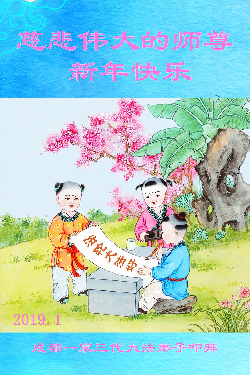 【明慧网二零一八年十二月二十九日】 四川省成都市一家祖孙三代大法弟子恭祝师尊新年快乐!