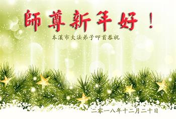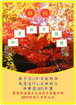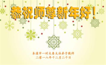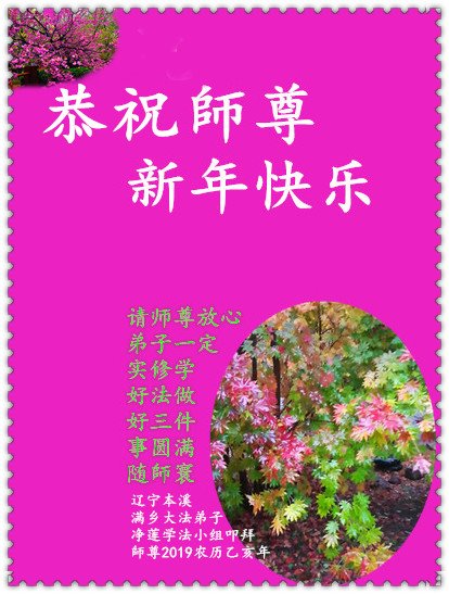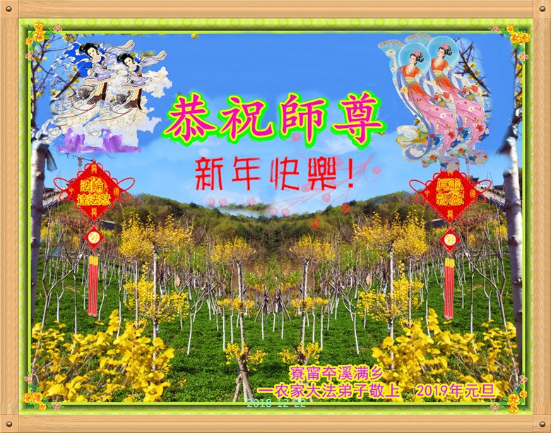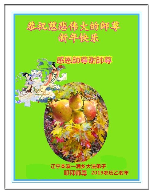 【明慧网二零一八年十二月二十九日】 辽宁本溪满乡一大法弟子恭祝慈悲伟大的师尊新年快乐!