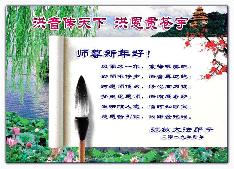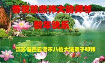 恭祝慈悲伟大的师尊新年快乐! 江苏省连云港市八位大法弟子叩拜! 江苏南京一大法弟子恭祝慈悲伟大的师尊新年快乐!