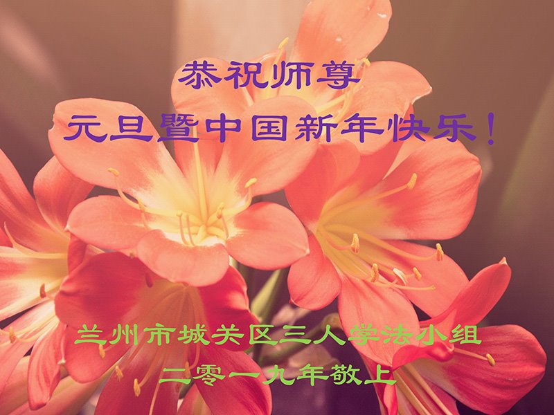 甘肃兰州市城关区三人学法小组大法弟子恭祝师尊二零一九年元旦暨中国新年快乐!