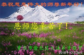师父,您辛苦了,您太辛苦了!您为了挽救苍宇及众生吃了无数的苦,遭了无数的罪,为了我们这些大法弟子操碎了心,我们无法回报师恩,弟子只有做好三件事,抓紧时间多救人。 重庆市一大法弟子跪拜 2019年元旦 重庆开州区大法弟子:恭祝李洪志师父2019年新年快乐!