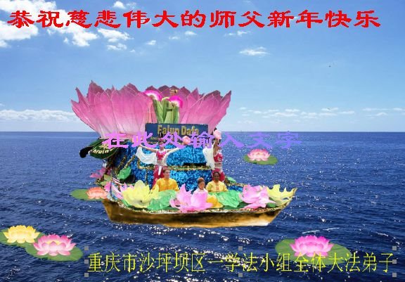 恭祝慈悲伟大的师父元旦快乐! 新的一年就要开始了,我们学法小组全体大法弟子恭祝师父元旦快乐!我们会共同携手走好今后各自修炼的路。 重庆市沙坪坝区一学法小组全体大法弟子跪拜! 重庆市沙坪坝区一大法弟子恭祝慈悲伟大的师父元旦快乐!