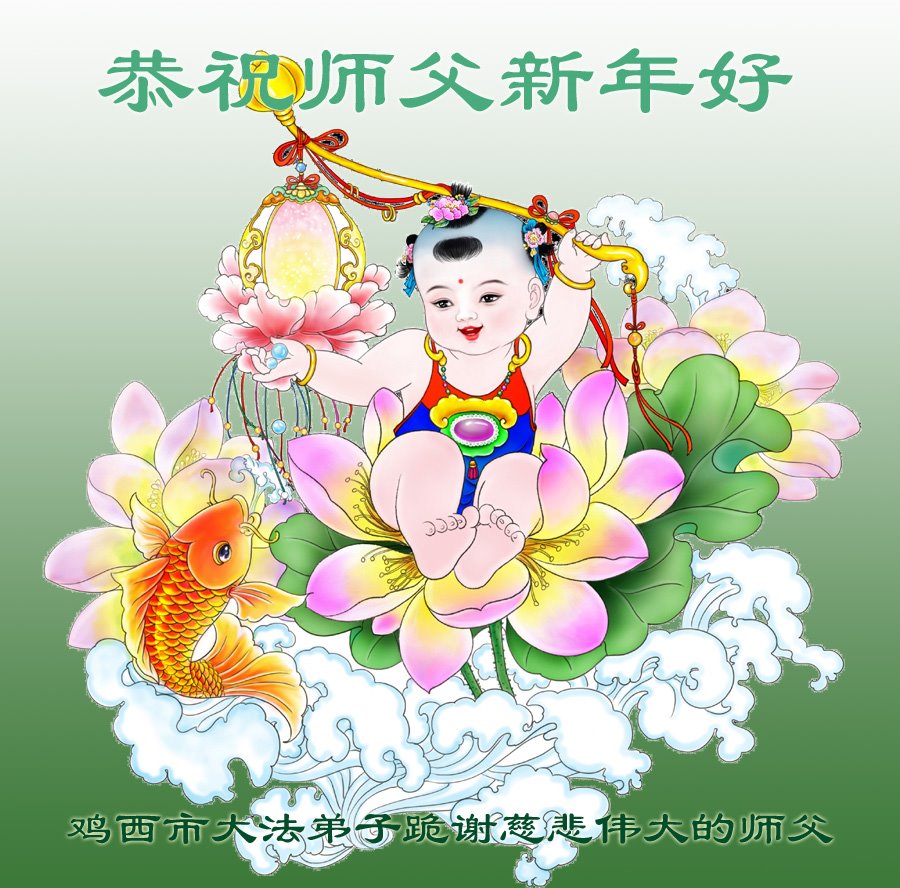 师父新年好!师父新年好! 不争气的弟子跪拜师尊:师恩浩荡,弟子愧对师尊,千言万语诉不完对师尊的感恩和无量慈悲。师尊为度弟子承受了太多、太多,师恩难报,弟子只有从新做好三件事、修好自己、多救人,再精進,弥补过去的懈怠。紧跟师尊的正法進程;直至跟师尊回家!愿师尊少一份辛劳、多一份欣慰! 谢谢师尊!谢谢师尊!谢谢师尊的慈悲苦度! 弟子再一次跪拜师尊,恭祝师尊新年好! 跪拜合十! 黑龙江密山大法弟子 中国大陆黑龙江省鸡西市一马姓大法弟子恭祝慈悲伟大的师尊新年快乐!